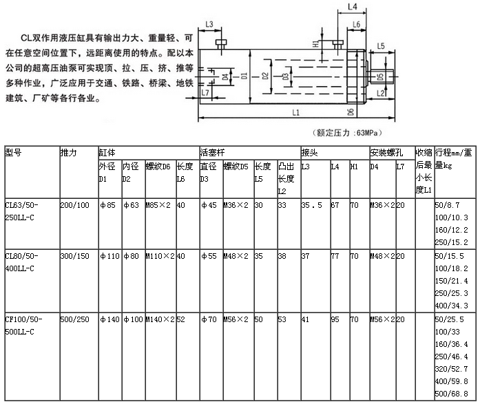 CL雙作用液壓缸